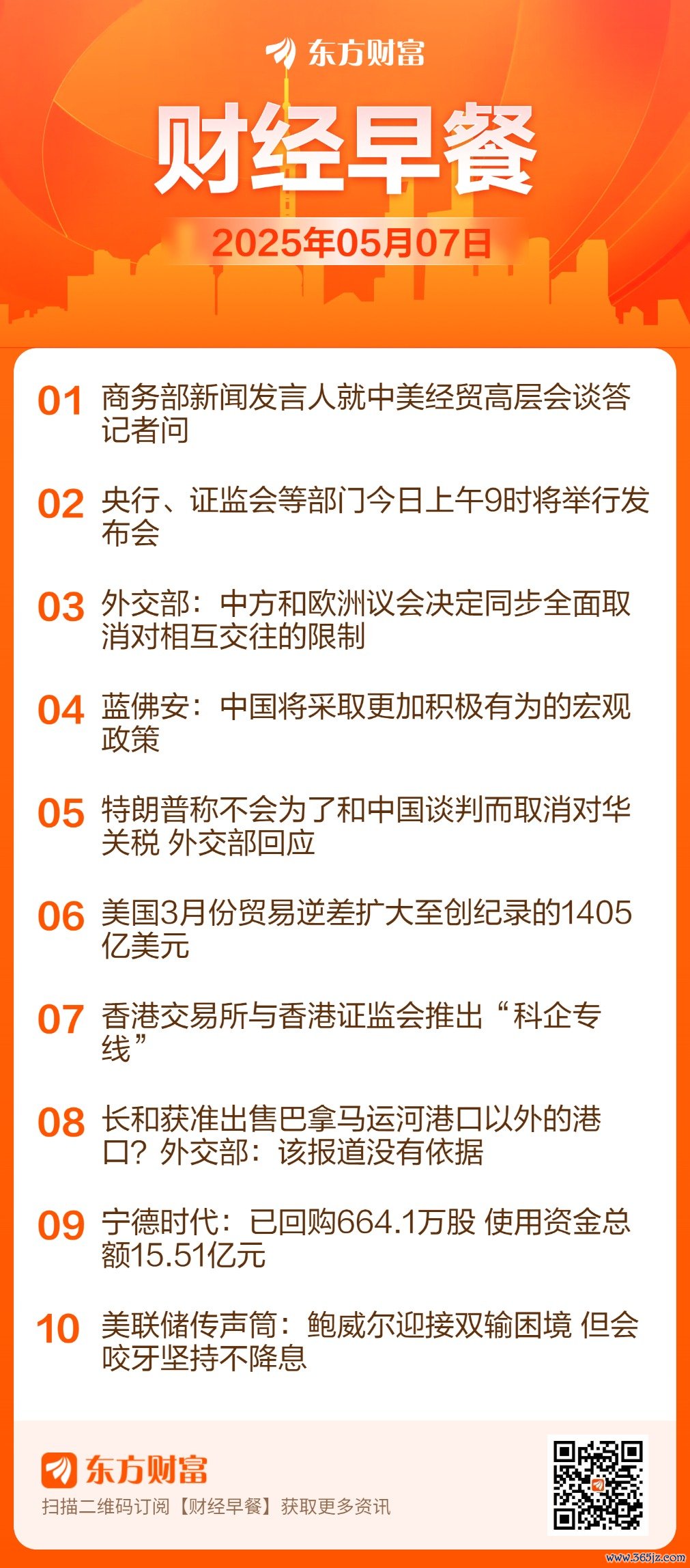1、商务部网站:商务部新闻发言人就中美经贸高层会谈答记者问。有记者问:5月7日早,外交部发布消息,何立峰副总理将于5月9日-12日访问瑞士,期间与美方举行会谈。请问商务部能否介绍一下此次会谈的背景和相关考虑?答:美国新政府上任以来,采取了一系列违规、无理的单边关税措施,严重冲击中美经贸关系,严重扰乱国际经贸秩序,也给世界经济复苏增长带来严峻挑战。中方为捍卫自身正当权益,采取了坚决有力反制。近期,美方高层不断就调整关税措施放风,并通过多种渠道主动向中方传递信息,希望就关税等问题与中方谈起来。
